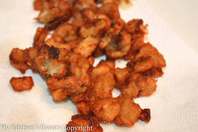 - 1 pound pork belly (chicharron) cut in 1/2 inch bits